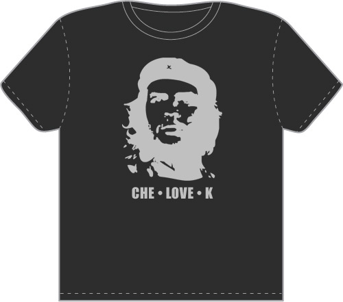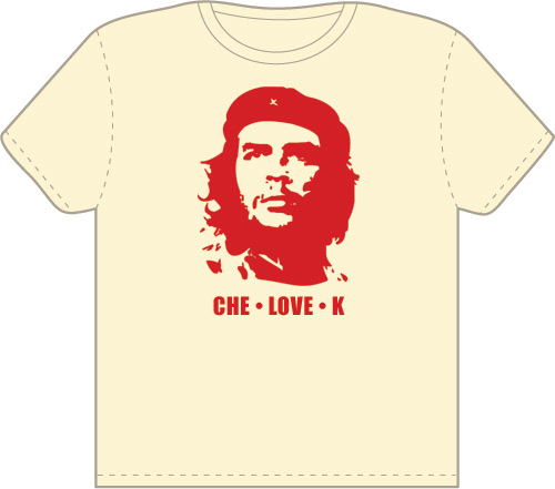 Че любит тебя!А если у тебя, или у человека для которого заказывается футболка, имя начинается на букву "К" (Катя, Костя, Казимир, Карина, Клава ...), то это 100% попадание.А еще Че может любить Клей, Квас, Картошку, Клинское ...